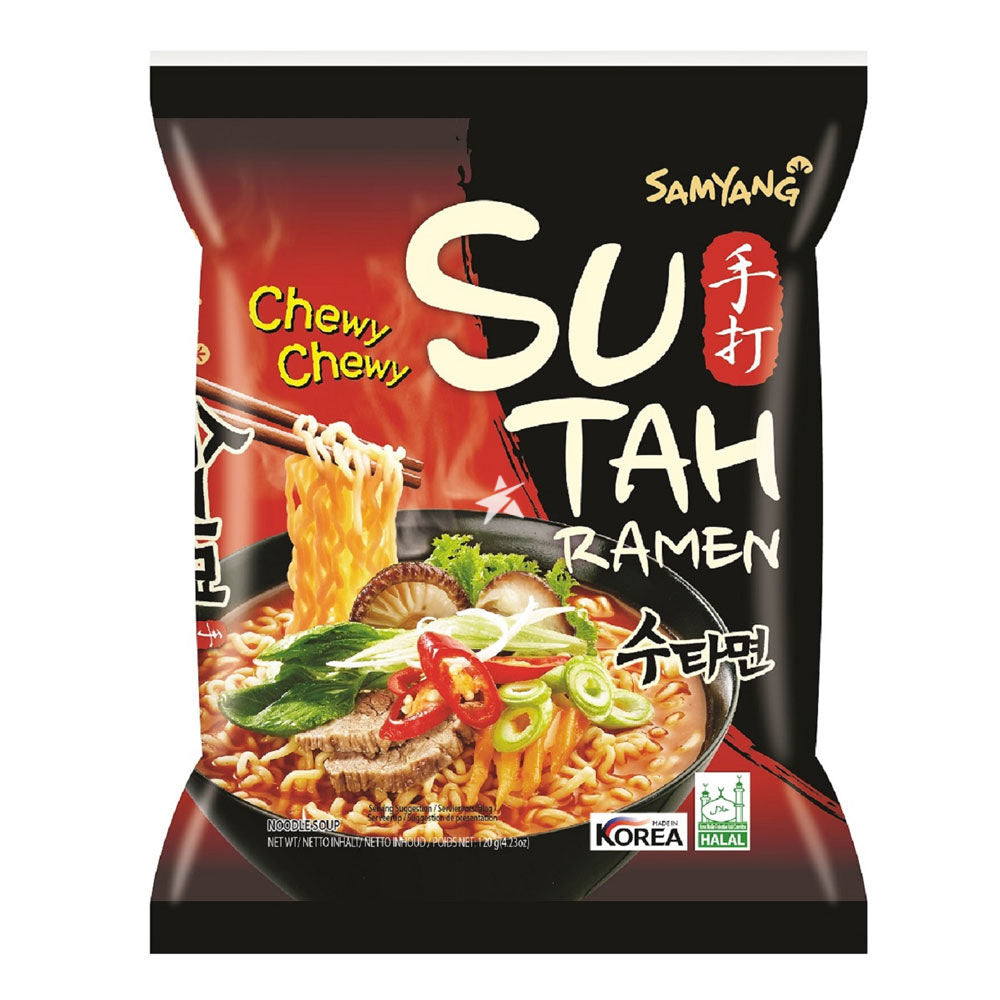 Descriere: Tăiței instant coreeni din gama Samyang Sutah, cu o supă bogată și picantă de vită. Textura tăițeilor este elastică și mestecabilă, apropiată de tăițeii făcuți manual. Ideal pentru iubitorii de ramen autentic cu gust intens și aromă profundă de carne.