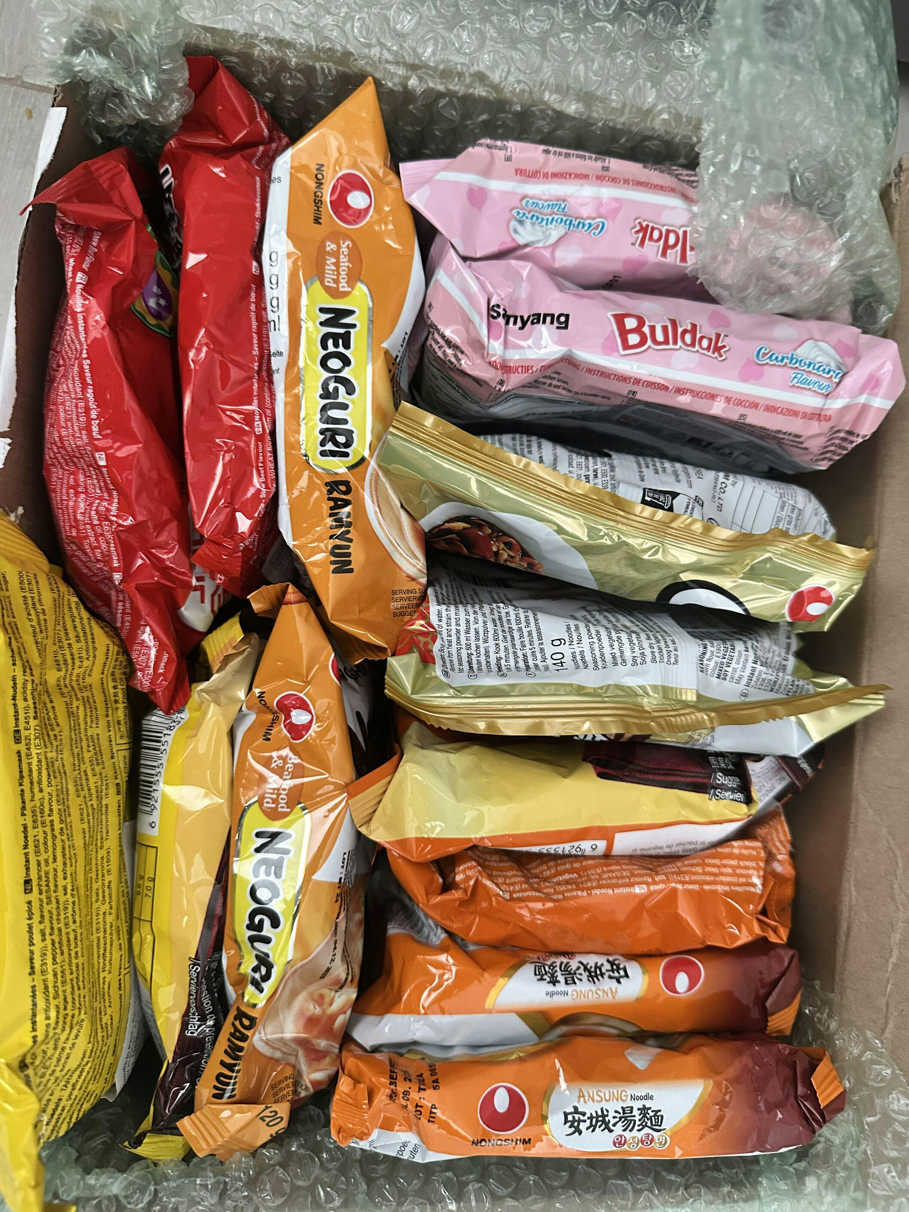 Ingrediente: făină de grâu, ulei de palmier (conține antioxidant E319), amidon de tapioca, sare, regulatori de aciditate (E501, E500, E452i, E451), gumă guar, sare, zahăr, aromă artificială de pui, potențiator de aromă (E621), condimente (inclusiv turmeric, ardei iute), pudră de sos de soia, extract de drojdie, potențiator de aromă (E635), ceapă deshidratată.