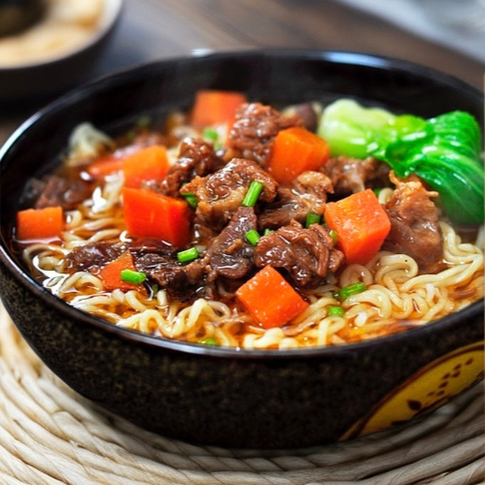 Descriere: Tăiței instant cu aromă artificială de vită înăbușită, produs original importat din China. Gust bogat, ideal pentru iubitorii de mâncăruri asiatice picante.